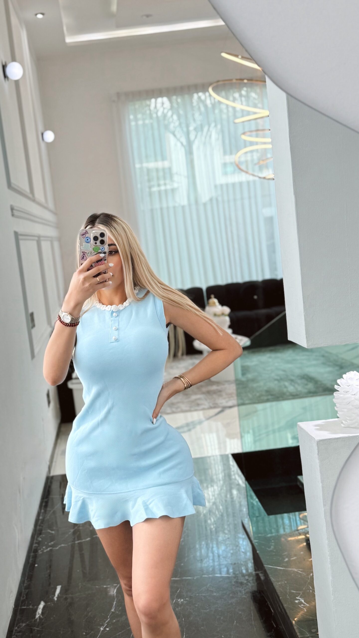 Vestido azul con olanes