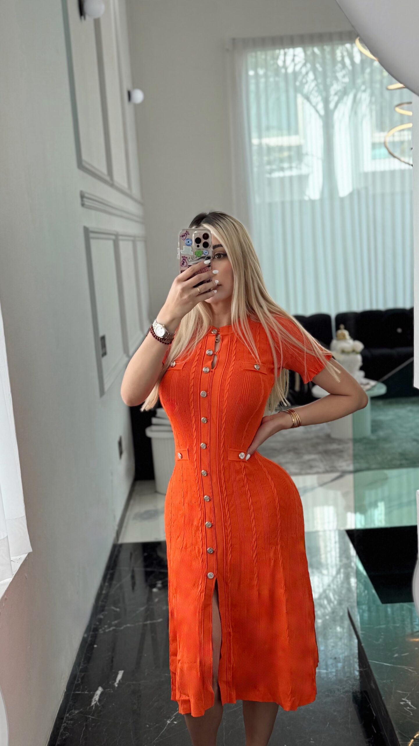 Vestido naranja botones